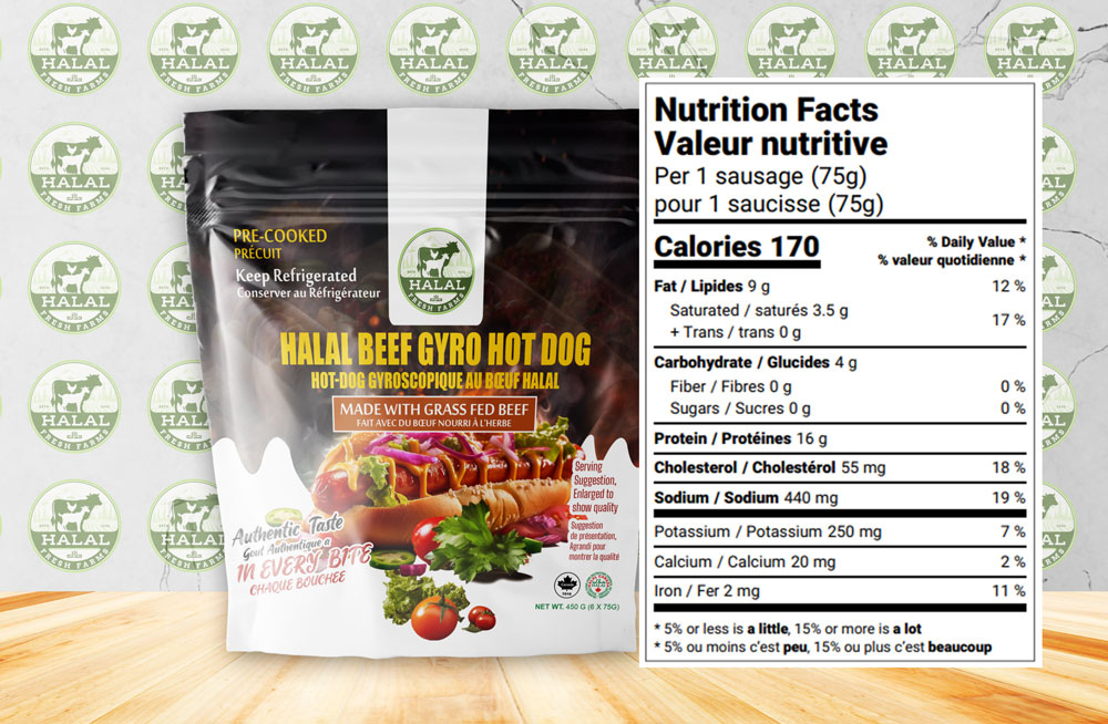 Halal Beef Gyro Hot Dog pouch bag 1 lb ( 452 g)