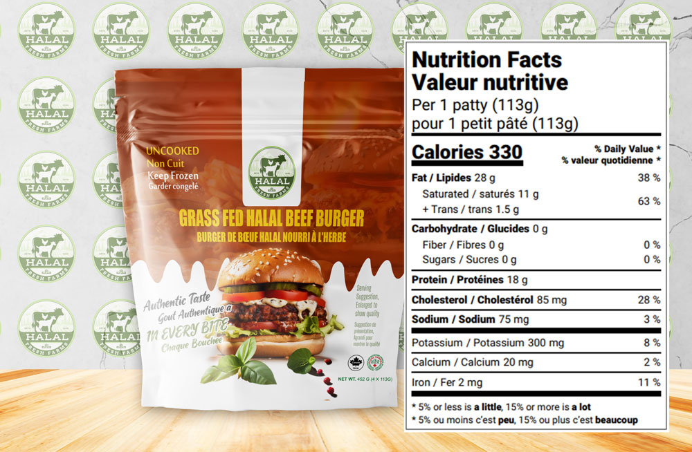 Grass Fed Halal Beef Burger – Uncooked 1 LB (452 g)