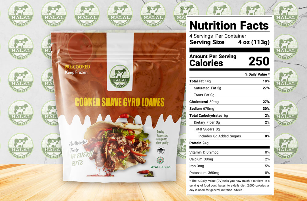 Beef and Lamb Gyro/Donair (Cooked and Sliced) 1 LB (452 g)